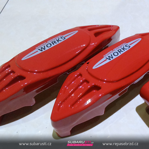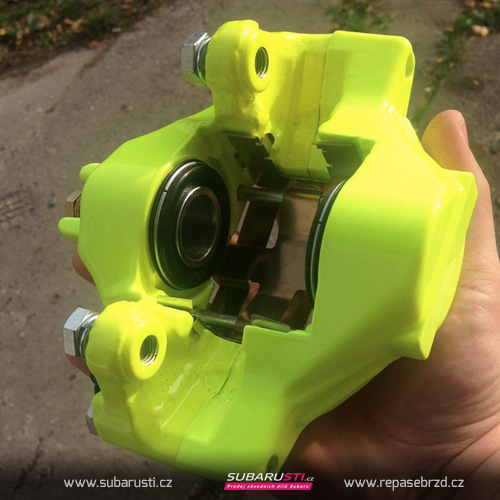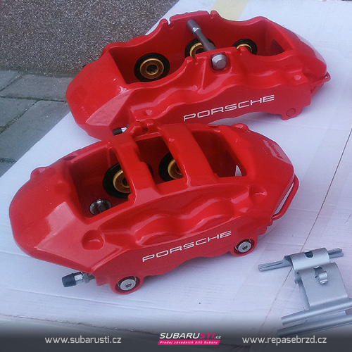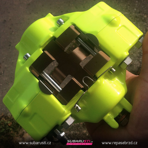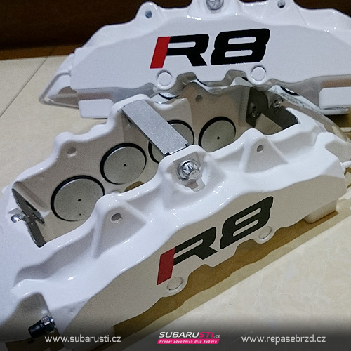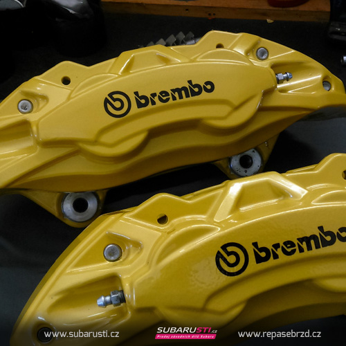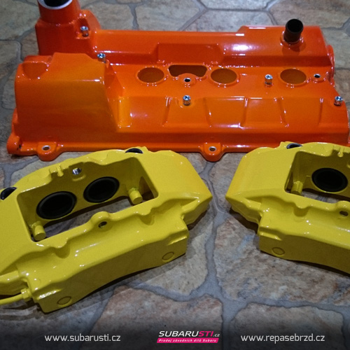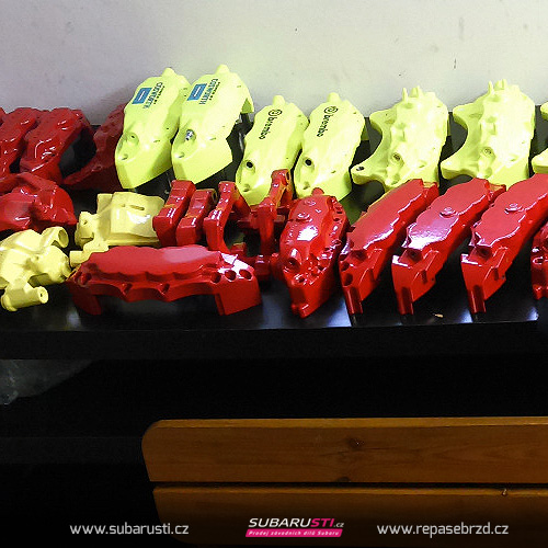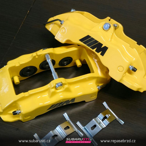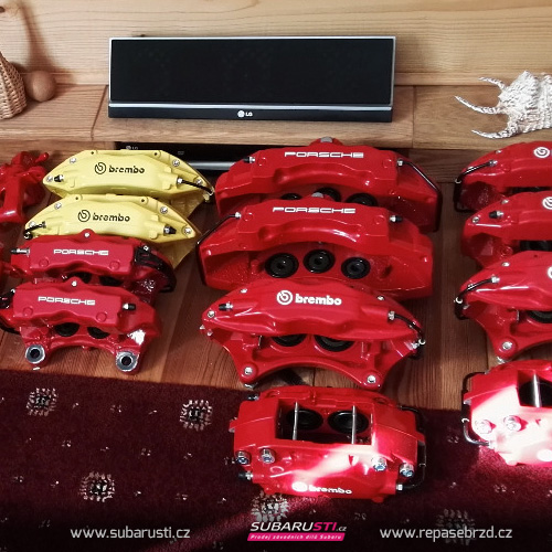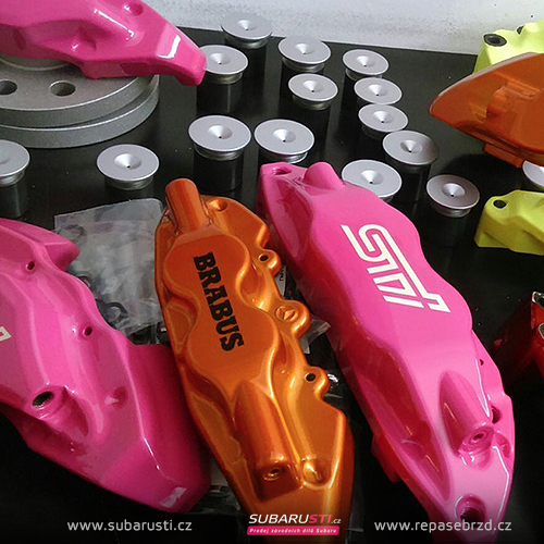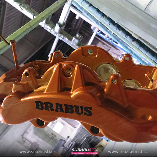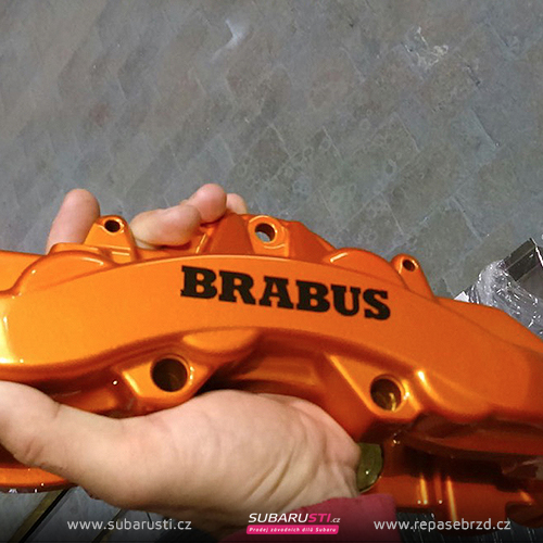 Veškeré nedostatky a vady brzdiče musíme zabrousit, vyvařit nebo zatmelit. Poté lakujeme kvalitní práškovou barvou. Chceš-li na brzdič umístit nějaké logo, stačí jej zaslat. My už logo na brzdič přeneseme a pořádně zalakujeme. V mnoha případech brzdiče ještě dolěšťujeme pastama 3M.